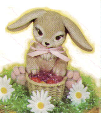 Rabbit SITTING with BASKET 6"High #0132-Kan