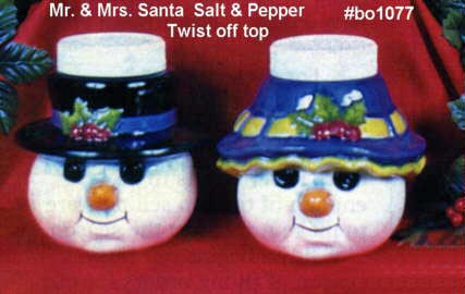 Salt & Pepper snowman top shaker set 3 1/3 x 3 "